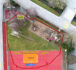 der Spielplatz neben der Turnhalle teilweise gesperrt sein (siehe Situationsplan)